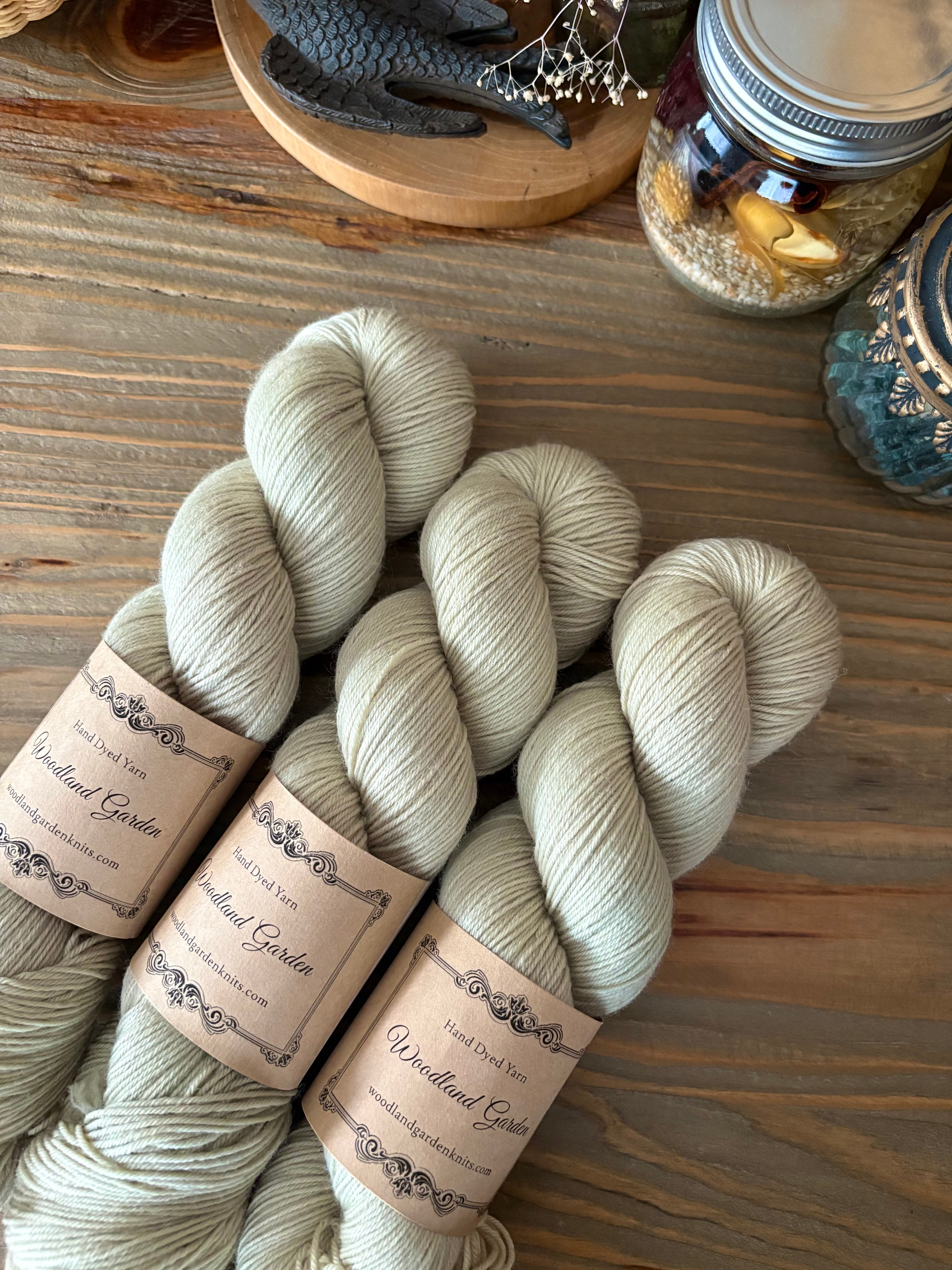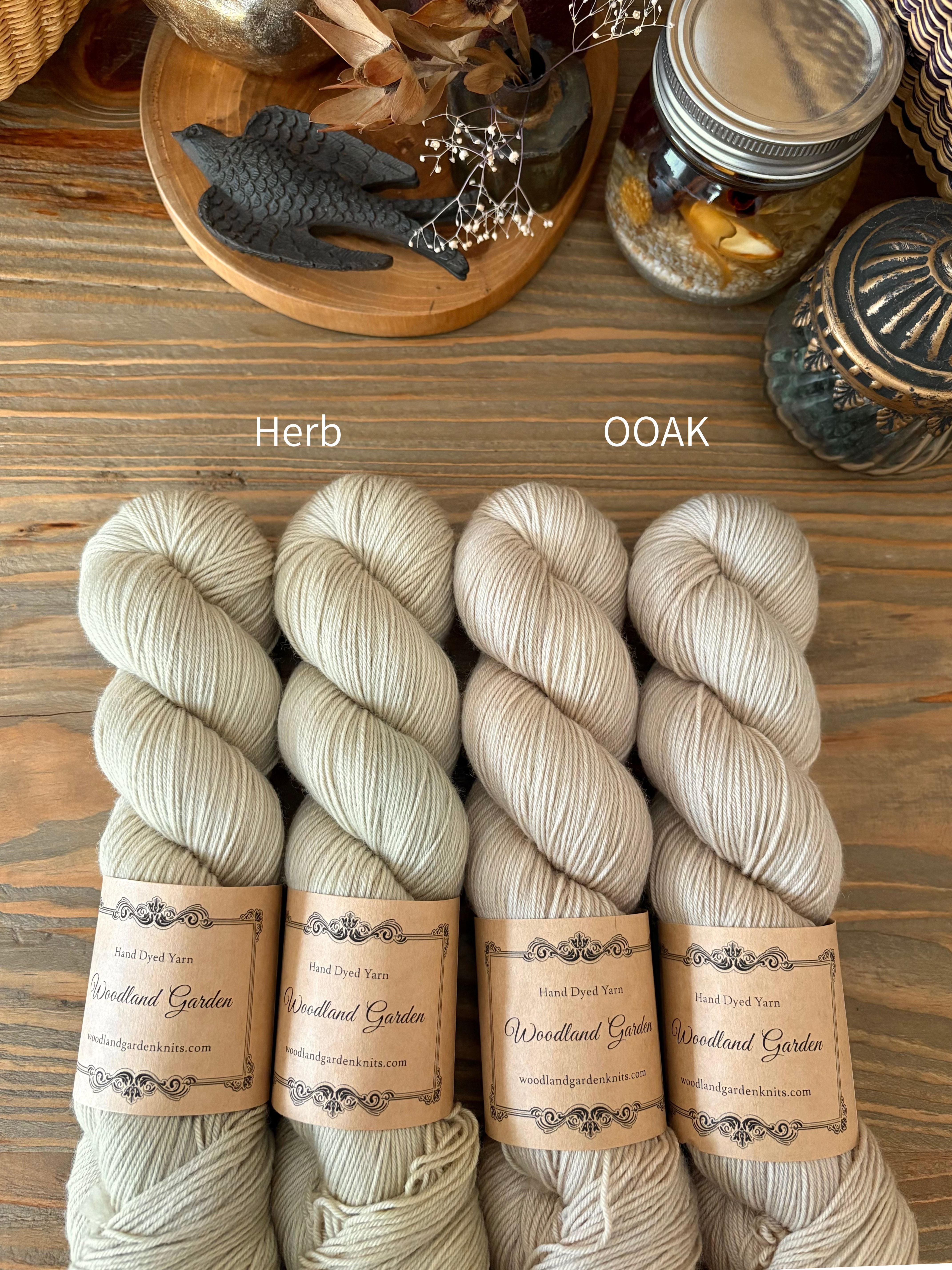 "スパイスとハーブ" のスパイス無し(スペックル無し)verです。ほんのりベージュっぽいグリーンでブラウン系と合わせやすそうなお色。