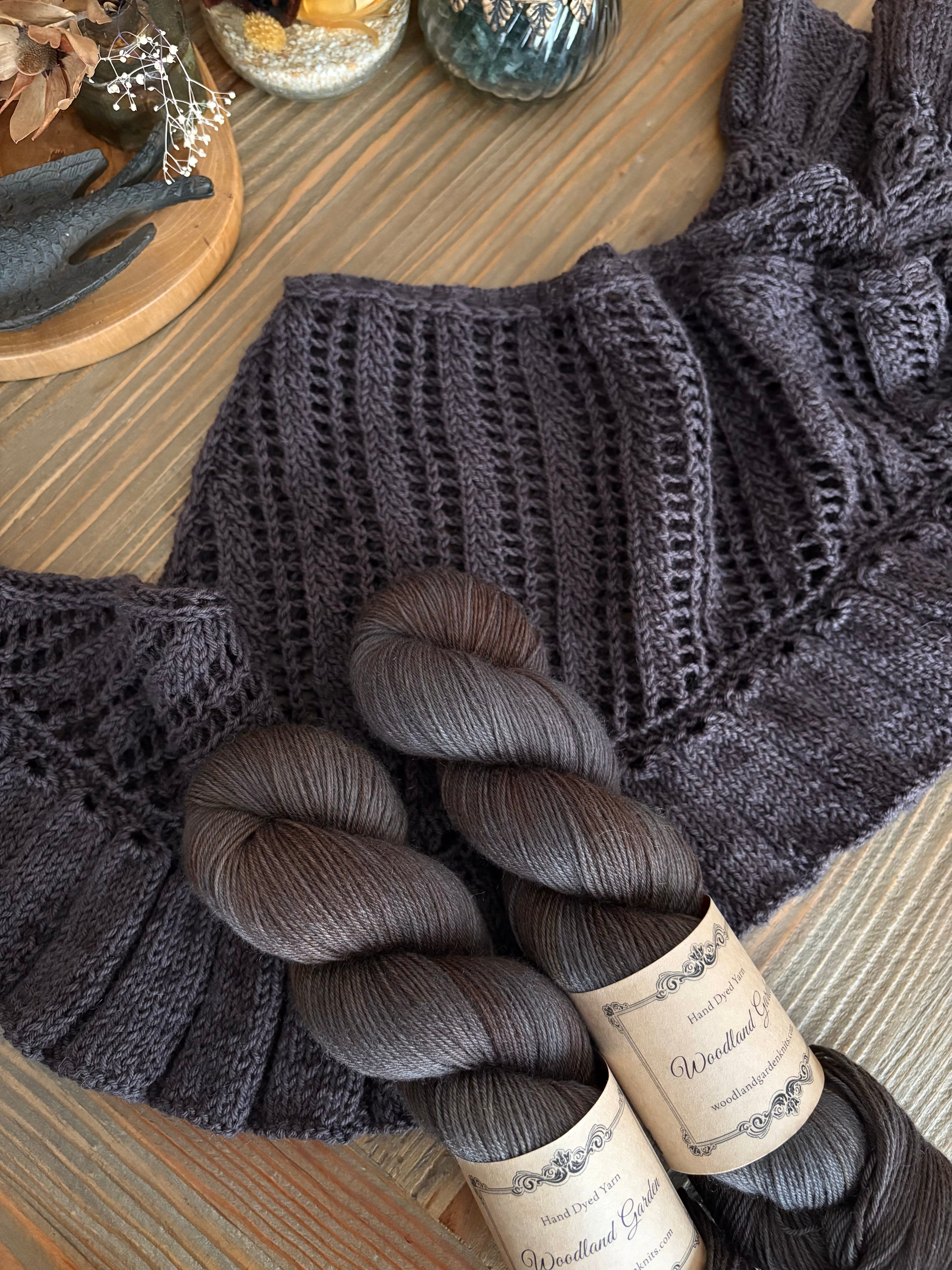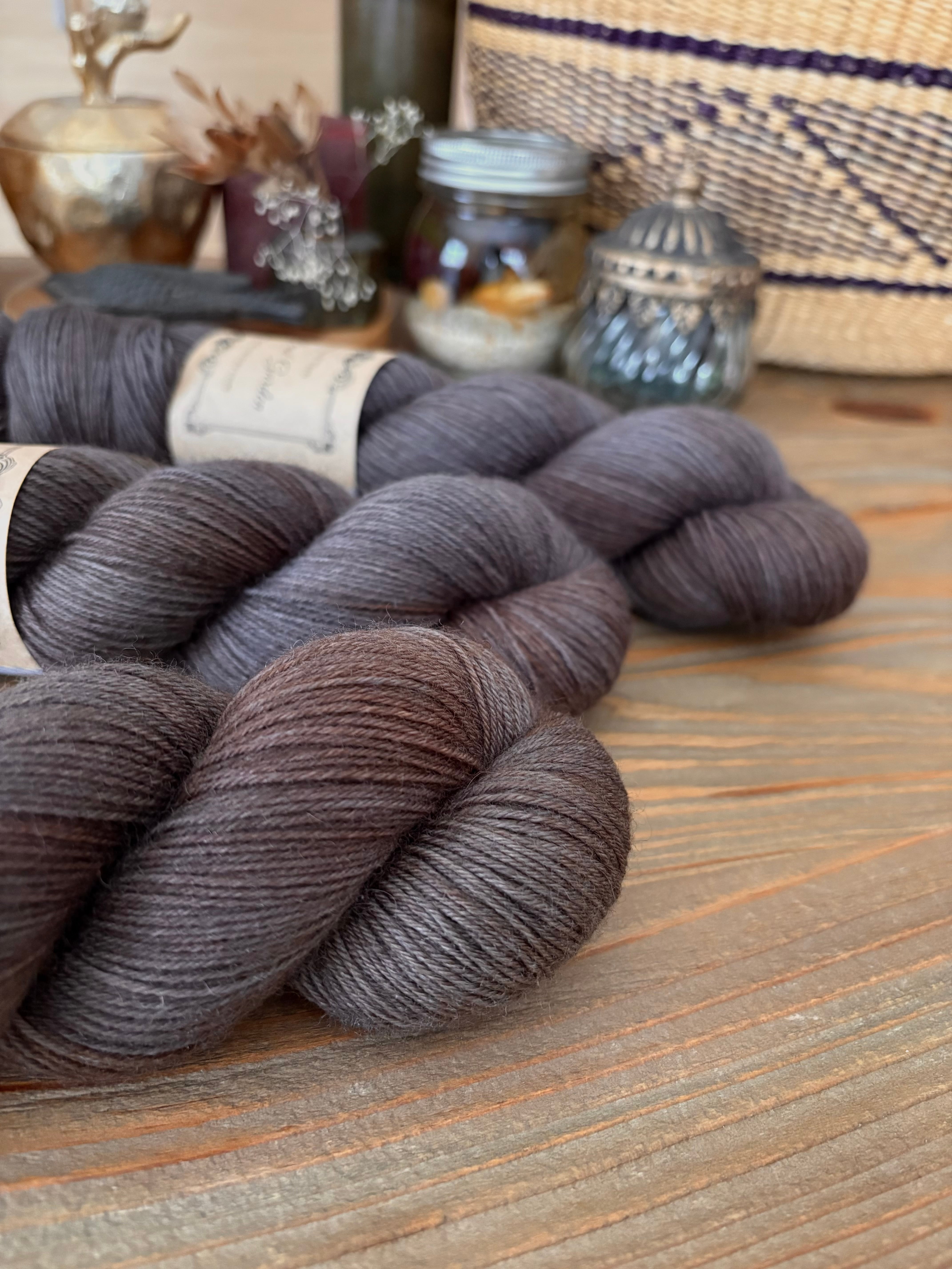 レゴリス。月の砂とか、惑星の表面の岩の上に積もっている砂とか、そんな感じです。ひゃ〜カッコイイ〜〜!!と思う色にしたくて染めました。グレーの染料は一切使ってないんですが、結果的に少しブルー寄りのグレーといろんなブラウンのムラがクールなお色となりました。BFL Sockの乾いたような質感とお色の雰囲気がマッチしていて素敵なんですよ。割と激推しです。