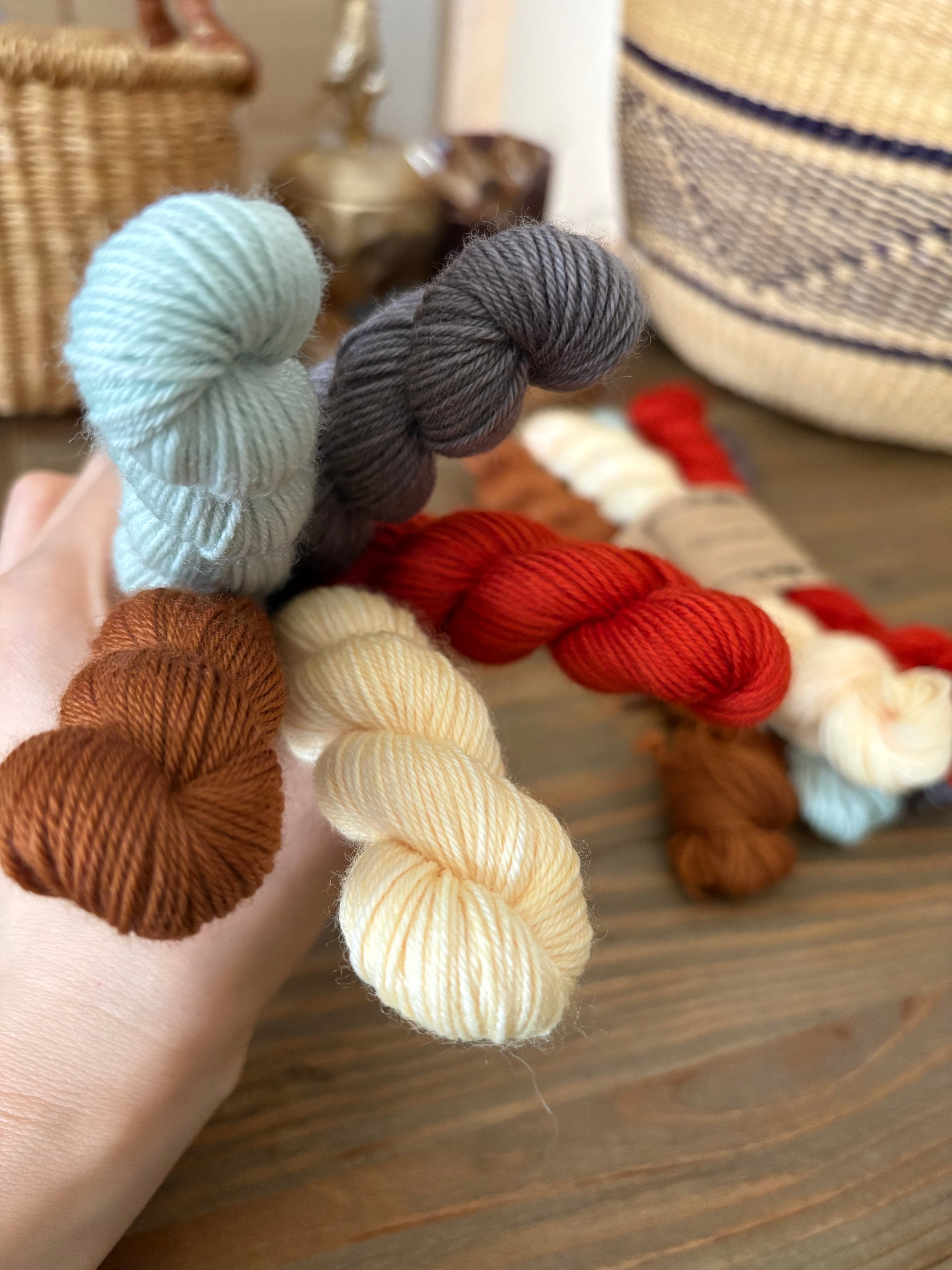 手染めならではのかせ差・色とび・ムラなどがございます。1かせ1かせが個性のある特別な毛糸として、お楽しみいただけますと幸いです。