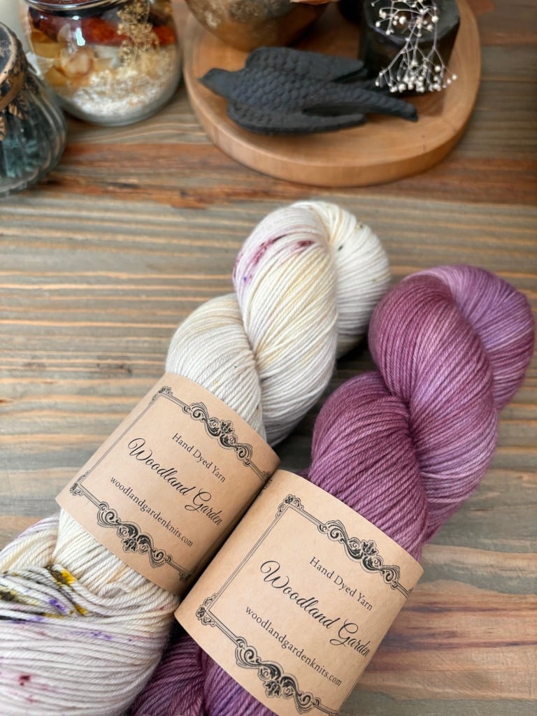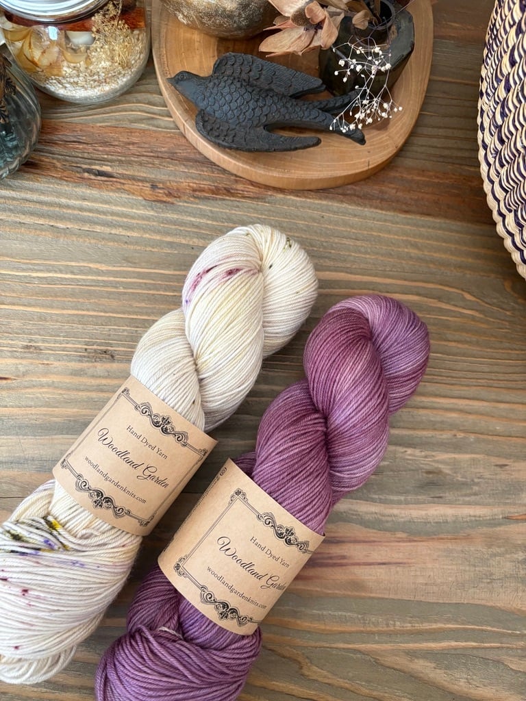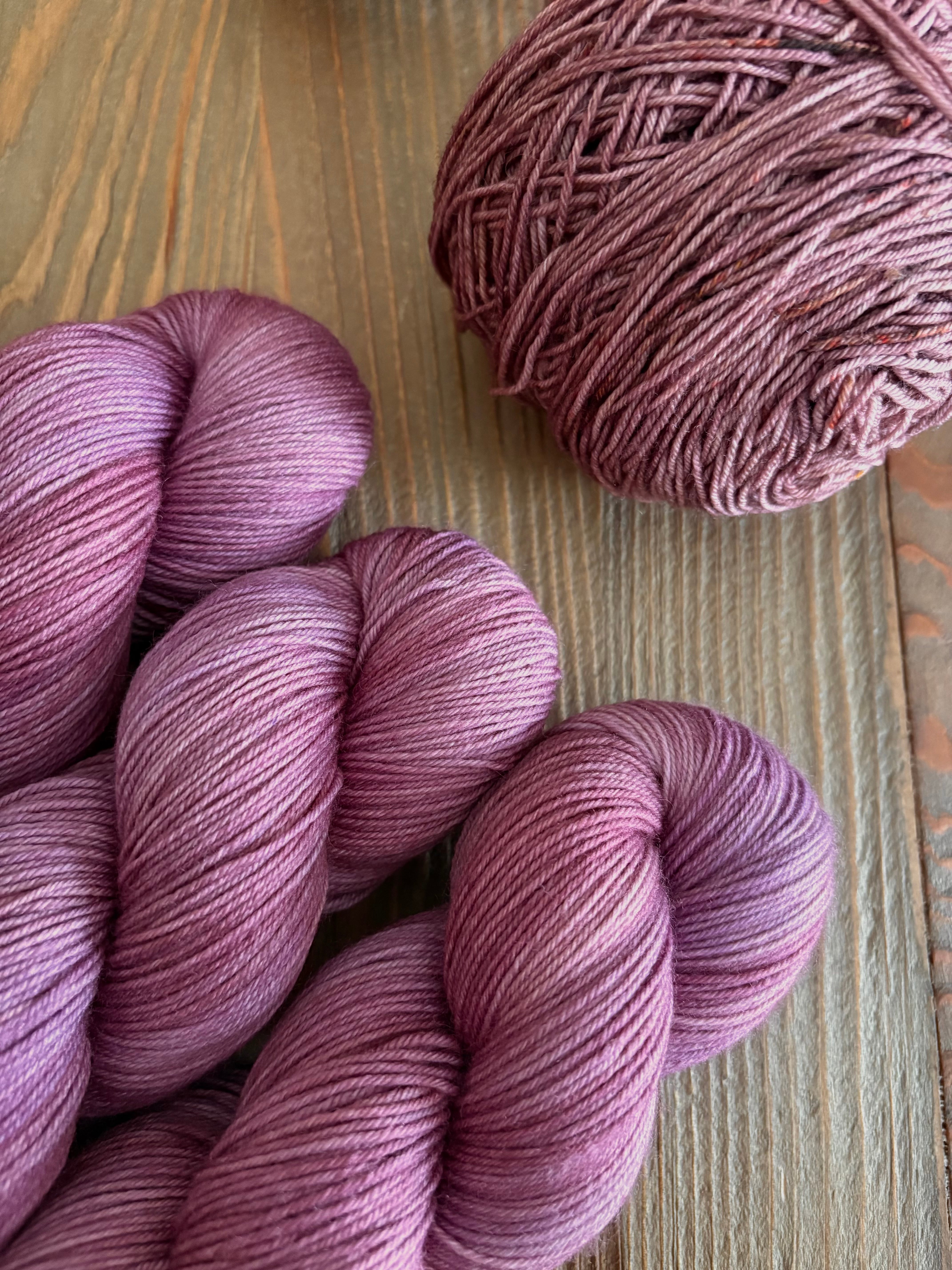 New Sockの2色、"ぶどうドレス" と "グレープソルベ" 各色1かせずつ計2かせのセットです。
