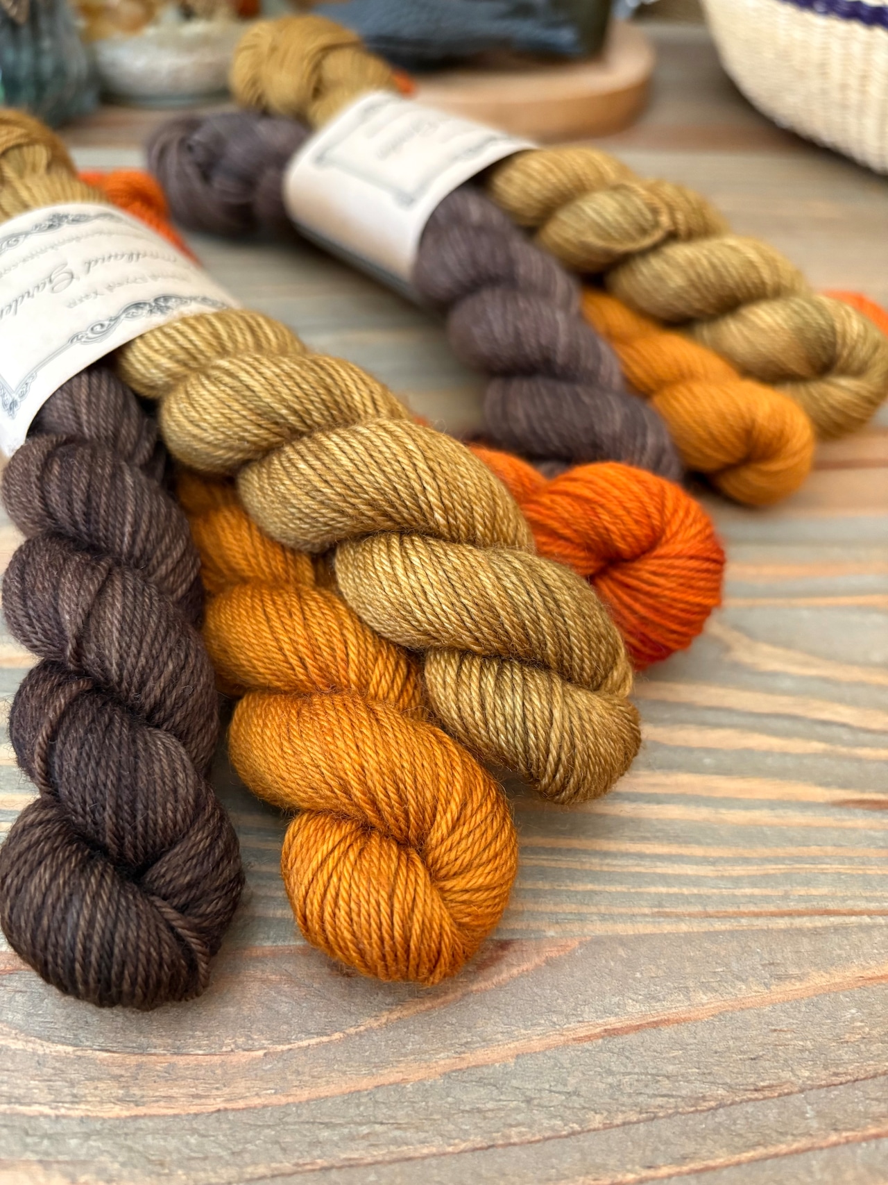 手染めならではのかせ差・色とび・ムラなどがございます。1かせ1かせが個性のある特別な毛糸として、お楽しみいただけますと幸いです。