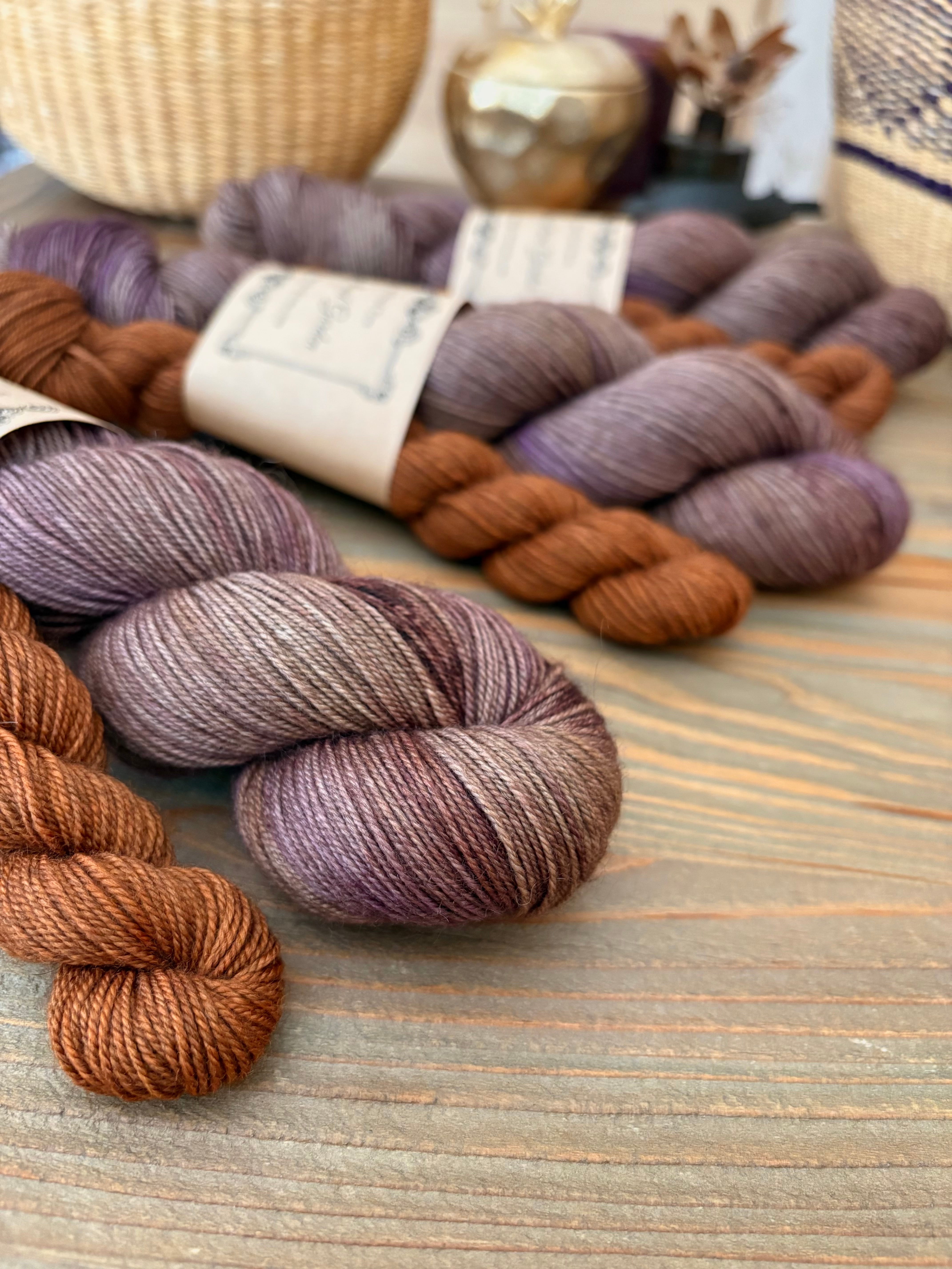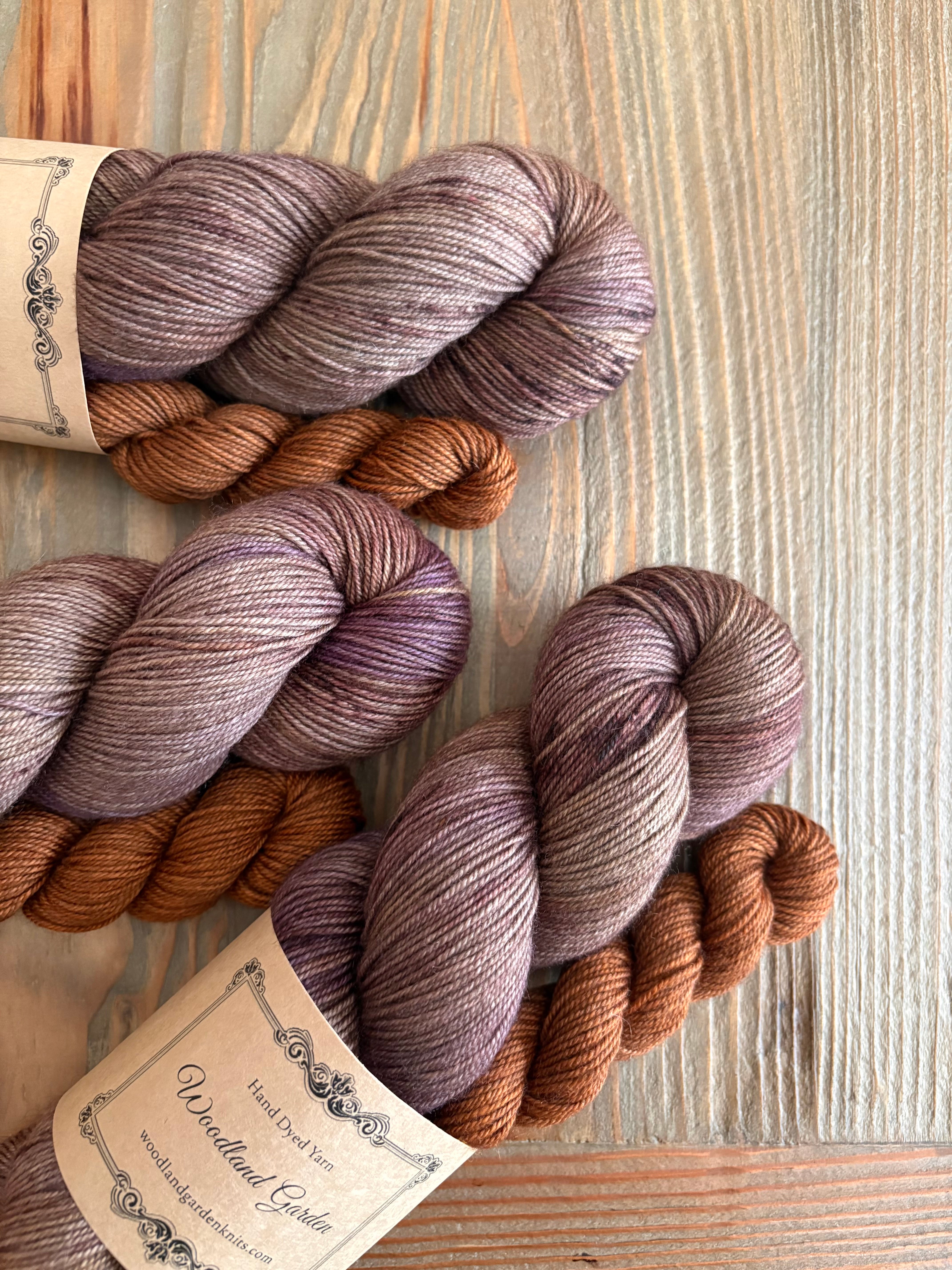 滅多に作らないYakのSock Setです。アイボリーとベージュ(Yakのグレイッシュなニュアンスのためグレージュに見える)のベースにバイオレットの濃淡とボルドーっぽいダークブラウンのスペックルが大人な雰囲気。セットのミニもYakですよ☆
